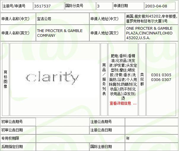 宝洁公司申请CLARITY注册牙膏商标遭驳2009-12-26 16:59:22 |