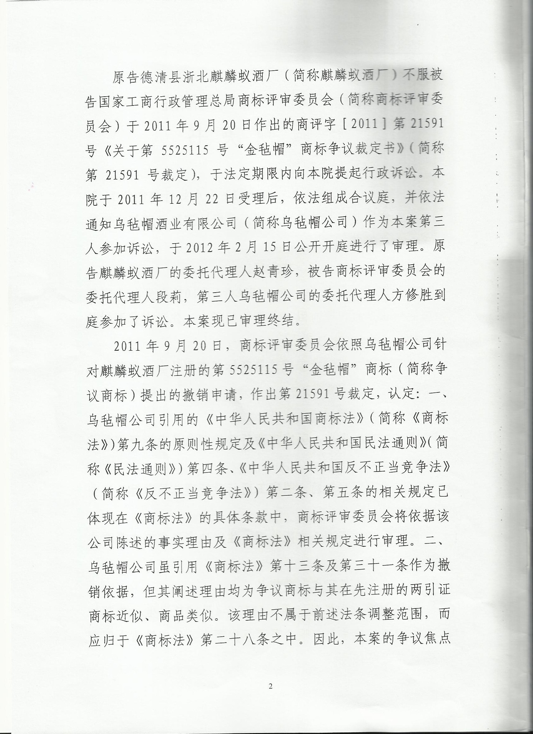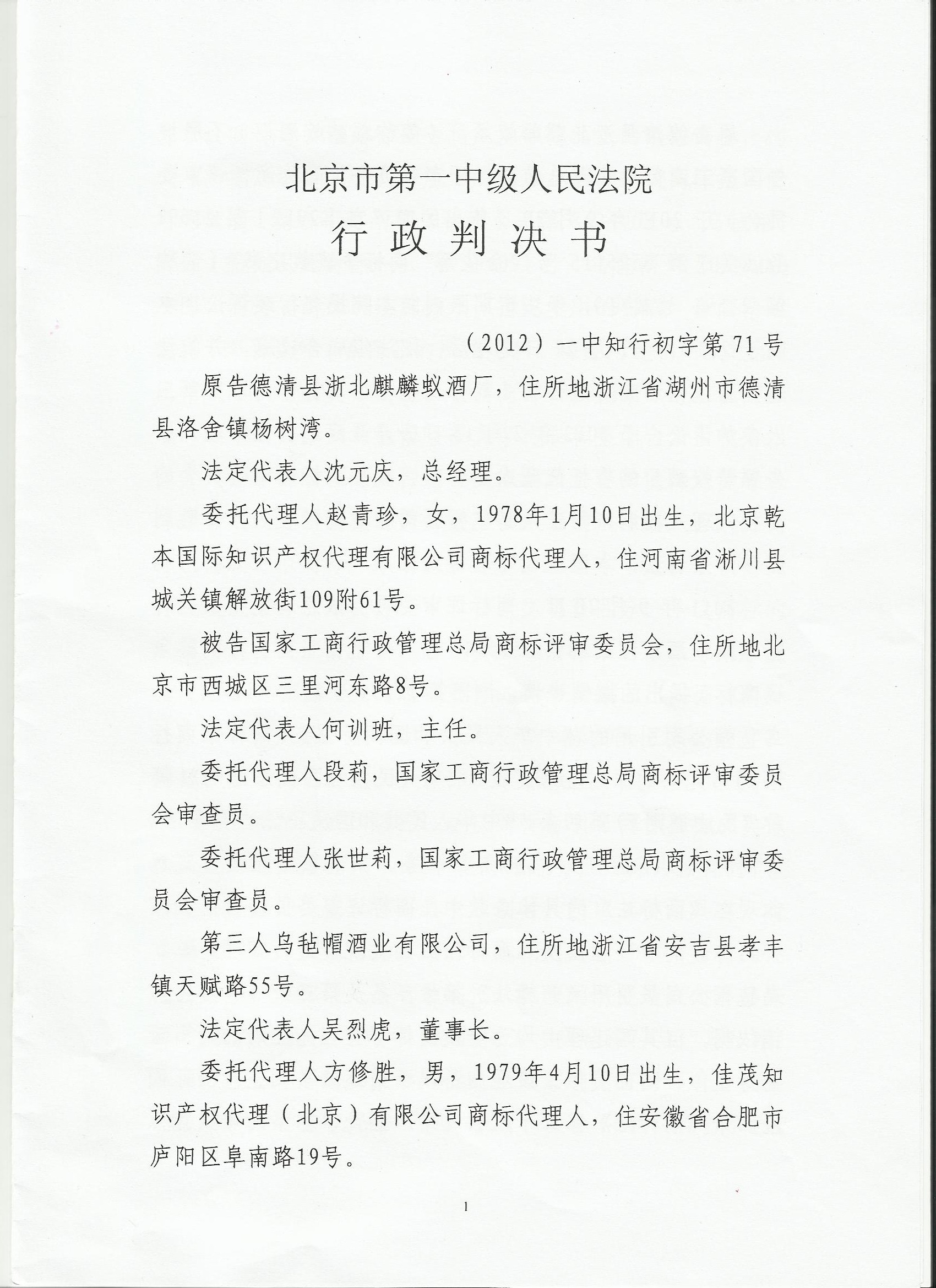 佳茂公司成功代理乌毡帽酒业有限公司作为第三人参加北京一中院诉讼代理2012-3-29 11:45:07 |