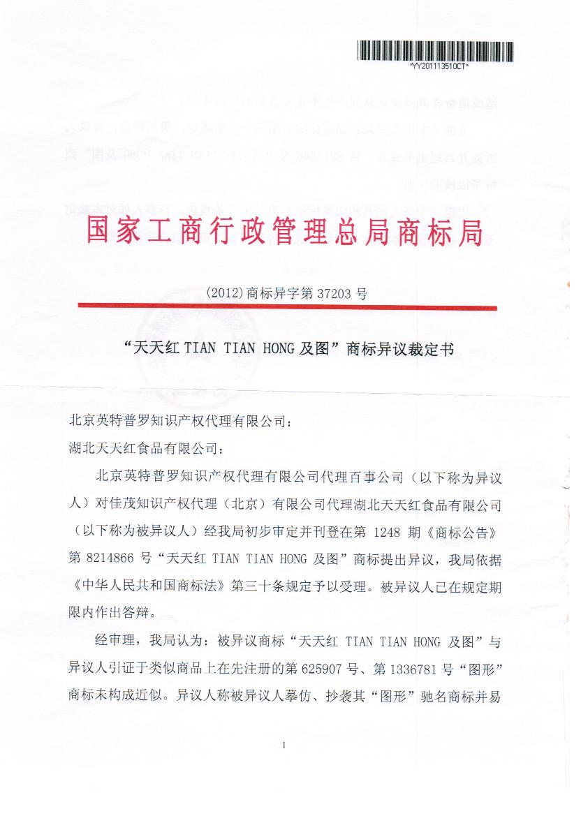 佳茂公司成功代理湖北天天红食品有限公司与百事公司商标异议案件2012-9-13 8:42:17 |